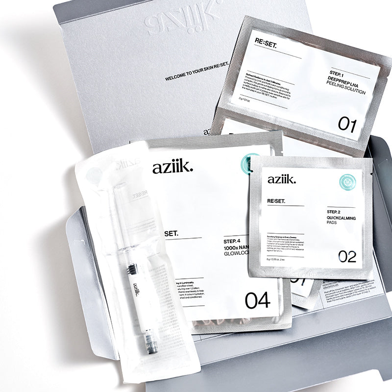 A high-end clinic-level radiance care solution, completed with aziik. home rituals.